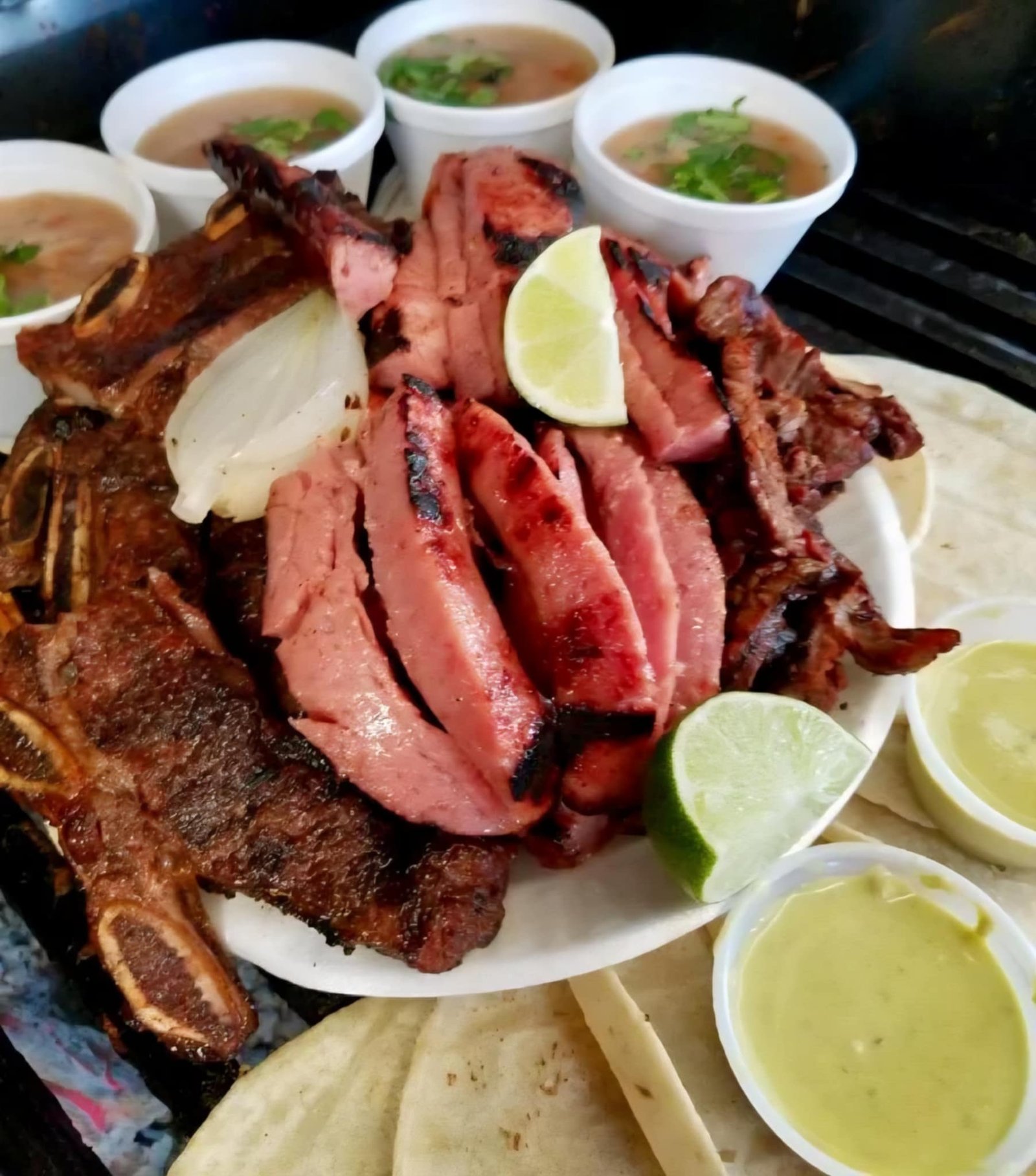 The Parrilladas comes accompanied with charro beans, tortillas, salsa and lemon.